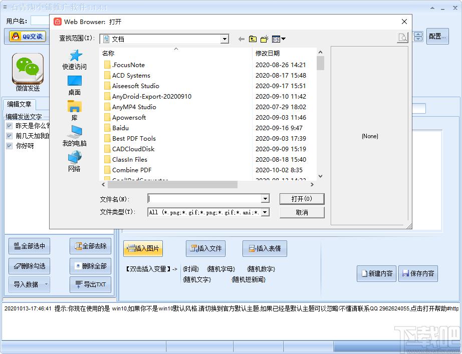 2、双击软件进入软件推广操作界面,该界面亏进行微信推广和编辑文字等操作