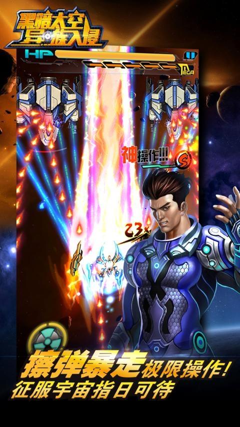 绚烂的游戏画面及特效,多种超炫弹幕战机和僚机,革新机师技能系统,闪避擦弹暴走系统等等,极限操作,将会带给你次世代的视觉盛宴。驾驶员整装待发,逆天技能称霸银河,无敌将神系统暴力宣泄,所向披靡。更有来自虫族、神族、人族敌人独特招数,挑战操作更挑战智力。